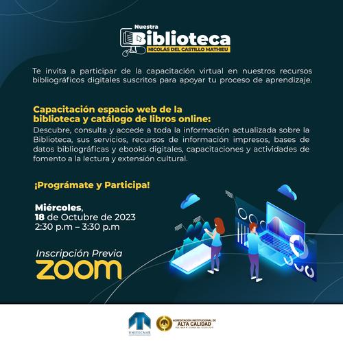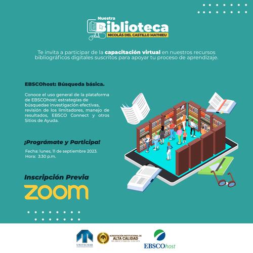 Tenemos capacitaciones en los distintos recursos bibliográficos digitales (bases de datos bibliográficas y ebooks) para orientar a nuestros usuarios en la búsqueda, selección y recuperación de información básica y especializada.